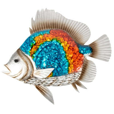 37 1/4 Inches Wide x 17 1/2 Inches High Colorful Metal Fish Wall Decor