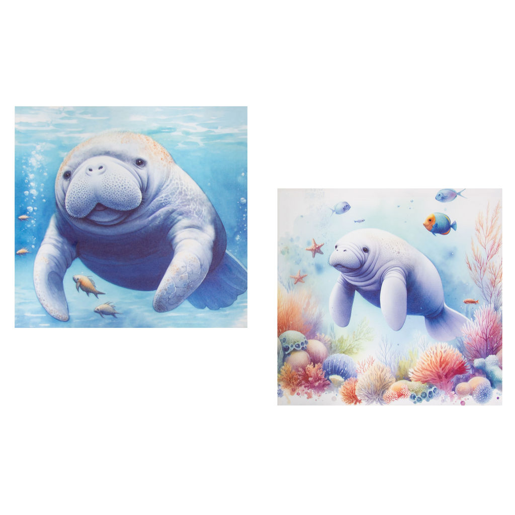 15 3/4 Inches Square Assortment of Two Manatee Water-Proof Color Canvas Print Wall Art