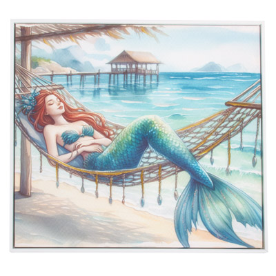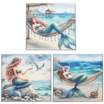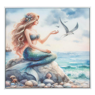 High-Quality, Hand-Embellished Gel Giclee Wall Decor – This is an Assortment of Two Different Mermaid Scenes That Look Great Together – Each Cute, Square Mermaid Canvas Print Has a Modern White-Colored Floating Frame to Compliment the Artwork and is Decorated with Touches of Paint and Metallic Sparkle with Waterproof Colors – Must Be Ordered in Multiples of Three