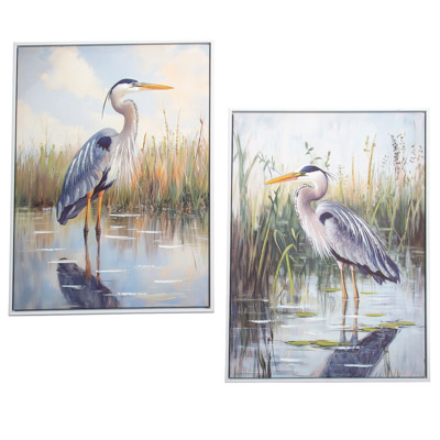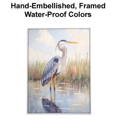 High-Quality, Hand-Embellished Gel Giclee Wall Decor – This is an Assortment of Two Different Heron Scenes That Look Great Together – Each Long-Legged Bird Canvas Print Has a Modern White-Colored Floating Frame to Compliment the Artwork and is Decorated with Touches of Paint and Metallic Sparkle with Waterproof Colors – Must Be Ordered in Multiples of Two