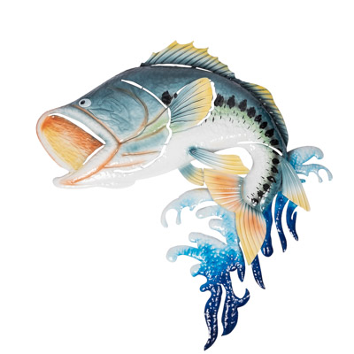 This Dramatic, Painted Metal Wall Decor Will Make a Big Splash With a Big-Mouthed Bass Fish Jumping Out of the Water – A Trophy-Winning Decoration Whether It’s For the Wall of an Actual Fishing Lodge, Man Cave, or Lakeside Cabin or You Just Want the Room to Look Like It Is