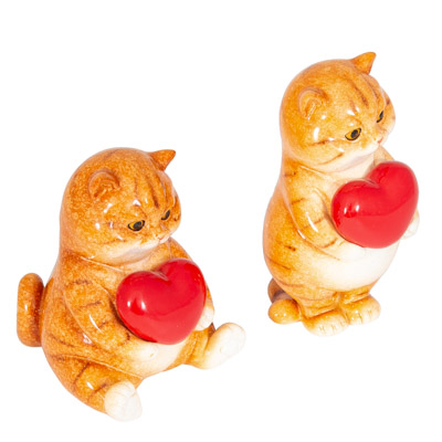 This Assorted Polystone Chubby Orange Tabby Kitty Cat Figurine Comes in Two Different Poses, One Standing and One Sitting, But Each Holding in Big Red Heart With Their Front Paws – This Is a Cute Gift to Convey I Love You in Cat Speak and to Show How Much You Love Cats, Too – Must Be Ordered in Multiples of Two