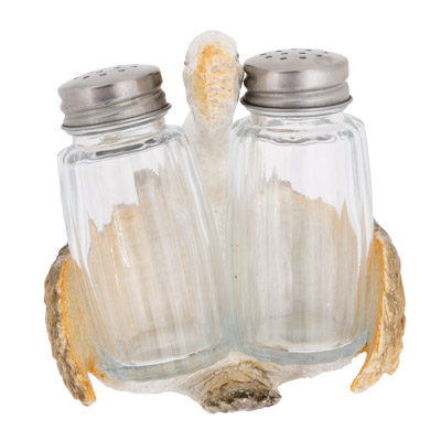 Here’s a Polystone Brown Pelican Patiently Standing Holding Metal and Glass Salt and Pepper Shakers Tucked Behind His Wings – He’s an Adorable and Useful Coastal Decoration – Real Quality at a Budget Price