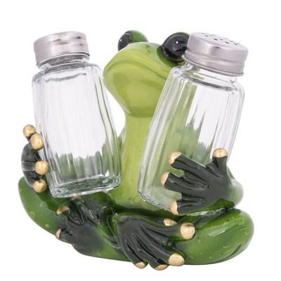 Whimsical Frog Merchandise Sells Great – This Frog is Purposeful, He Holds Salt & Pepper Shakers on His Lap, So He’s Cute and Practical and Makes a Great Gift for Frog Collectors – Set Comes Complete with Metal and Glass Salt & Pepper Shakers