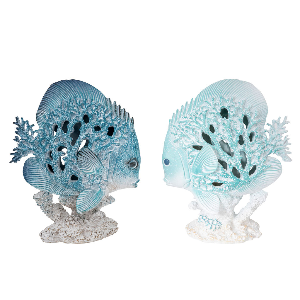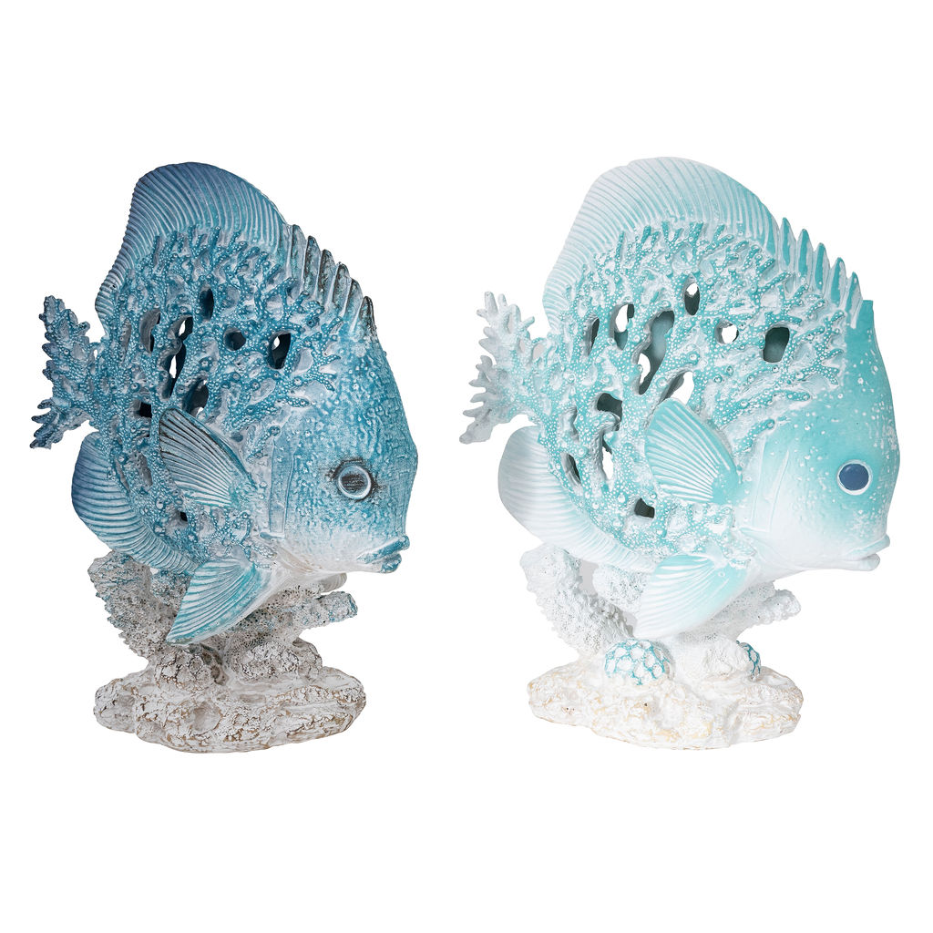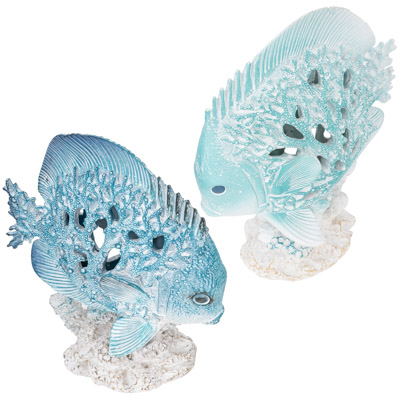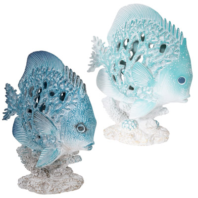 Here’s a Polystone Fish that Looks Like It’s Made from Undersea Coral – It Comes in Two Assorted Colors, Blue and Aqua – It’s the Ideal Accessory to Complete a Coastal Themed Vignette or Add With Other Great-Looking Nautical Decor – Must be Ordered in Multiples of Two