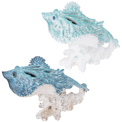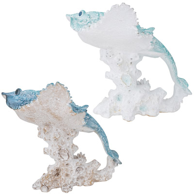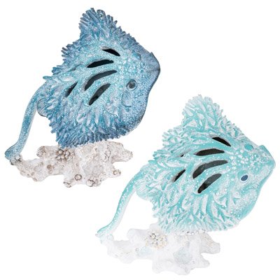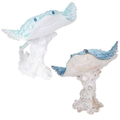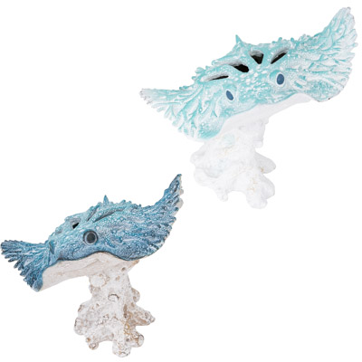 A Polystone Figurine that Looks Like It’s Made from Undersea Coral – This Sting Ray on a Base Comes in Two Assorted Colors, Blue and Aqua – It’s the Perfect Accessory for Marine Life Enthusiasts and Anyone Who Likes Great-Looking Coastal or Nautical Decor – Must be Ordered in Multiples of Two