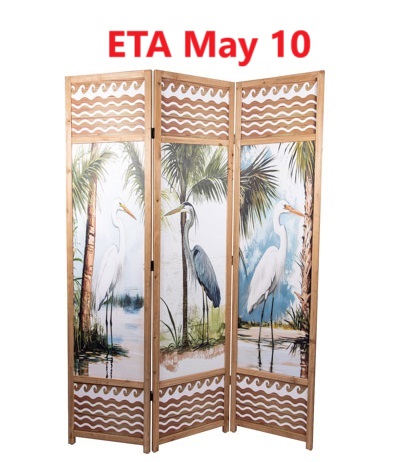 This Wooden Room Divider is a Fine-Looking and Functional Coastal Furniture Accessory – There’s a Magnificent Heron Standing in a Different Wetlands Scene on Each of the Three Vertical Folding Sections – Decorated on Both Sides of the Screen So It Looks Great From Any View and the Folding Panels Allow This Screen to Fit a Variety of Spaces – Must Be Shipped on a Truckline