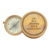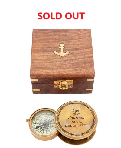Beautiful Gift Item with Deep Meaning That Comes in Wooden Case for Safe Keeping – Inscription on Top of Compass Reads “Life is Journey not a destination” – Made of Antique Patina Finish Brass to Give the Look of Real Antique, It’s a Working Compass and It Pivots Back Inside Cover to Close