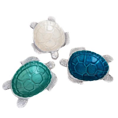 Assorted Bowl Shaped Like a Turtle is Made of Aluminum with Enameled Finish Inside the Turtle Shell – Comes in Three Different Colors – Turtles are Popular and These are Useful, So You Can’t Miss. Must be Ordered in Multiples of 3.