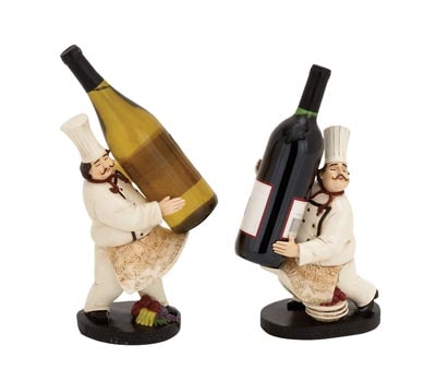 Accent a Bottle of Wine with This Kitchen Accent – Assorted Fat Chef Made of Polystone Holds a Bottle of Wine to Really Show It Off in Style – Bottles Shown Here Not Included – Makes an Splendid Prop for a Winery or Restaurant, too