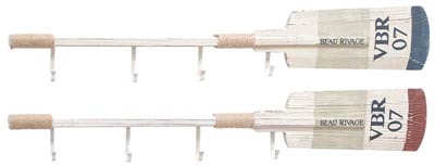 Rustic Painted Assorted Wooden Wall Hanging Oars with Four Metal Coat Hooks – Two Oars Shown Here – Great Wall Decor for that Shabby Chic Beach Cottage Decor
