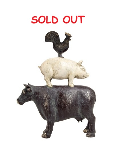It’s an Apropos Decorative Figurine for a Country Farm House Kitchen with a Chicken, Pig, and Cow or a Prop in a General Store Butcher Shop to Showcase Poultry, Ham, and Beef – Made of Polystone Finished to Look Like an Antique of Painted Cast Iron