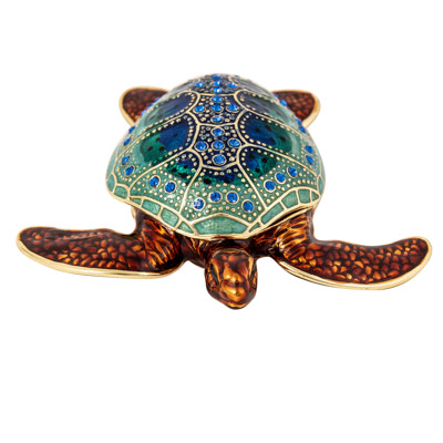 3 1/2 Inches Long Bejeweled Turtle Shaped Trinket Box