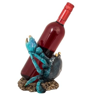Wine Bottle Stand that’s Quite a Delicious Catch For Seafood Eaters and Wine Aficionados – Shiny Finish Polystone Blue Colored-Crab Holds a Bottle of Wine (Not Included) – Shown Here with and Without Bottle