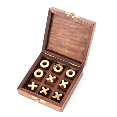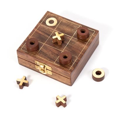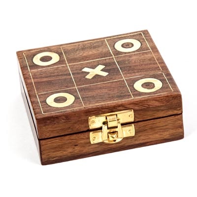 First Class Gift Item that is an All Time Classic – This Playful Tic-Tac-Toe Game is a Square Wooden Carry Box with Hinged Lid and Clasp – Game is Made of Wood and Beautiful Brass Inlays