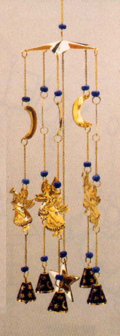 Brass Wind Chime with Angels, Moons, Stars, Bells, and Beads