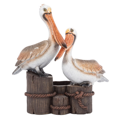 A Wine Bottle Stand Made of Shiny Polystone with Two Brown Pelicans Perched on Posts – These Birds Will Babysit Your Bottle Until You’re Ready to Pour More (Bottle Shown Not Included) – Also Perfect to Hold Remote Controls or Cell Phones in the Cut Out Piling