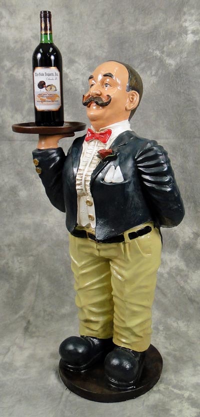 Pip! Pip! This Dapper Butler Made of Cast Resin Stands Jolly Ready to Serve Whatever You Place on The Tray He Holds High – A Smashing Decorative Accessory, He Is – Shown with Bottle Not Included