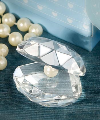Lovely Faceted Crystal Collectable Shaped Like an Oyster Shell Opening to Reveal Its Pearl Inside – Comes Packaged in Gift Box Tied Up with Ribbon