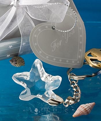 Pretty Little Clear Crystal Glass Starfish on Metal Key Chain – Comes Packaged in Gift Box Tied with White Ribbon – Truly a Classy Souvenir