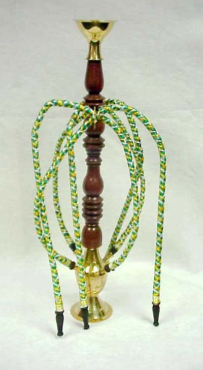 Brass and Wood Hookah Water Pipe – Decoration Only – 4 Hose
