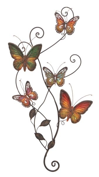Artistic Wall Sculpture of Swirls and Leaves with Five Butterflies – Made of Metal But Captures the Delicacy of Butterflies and the Softness of Nature