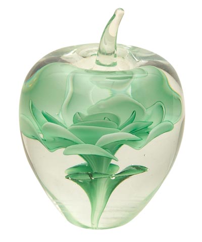 Glass Apple Paperweight with Green Flower Inside
