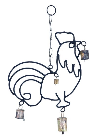 He Doesn’t Strut Around or Crow at Dawn, But What This Cock Will Do is Proudly Hang in the Garden and Make Soft Sounds in the Breeze – This Rooster Shaped Iron Chime has Copper Colored Bells and Hangs from a Chain