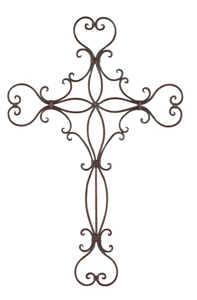 Beautiful, Artistic Wall Hanging Christian Cross – A Symbol of Faith and Hope Eternal Made of Metal with a Darkened Antique Finish