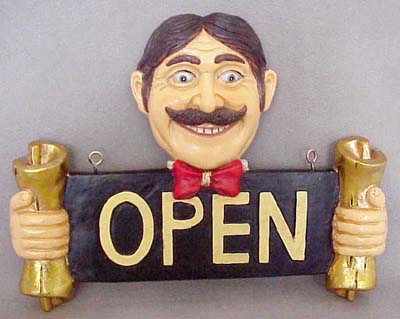 Open Sign with Man’s Head