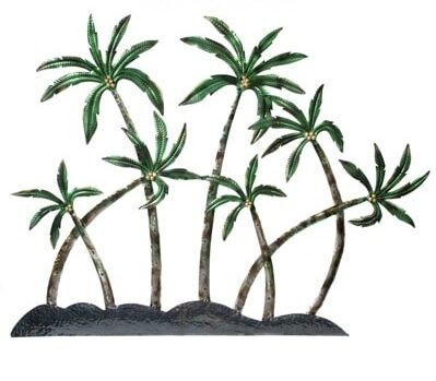 A Very Large Wall Hanging of a Grove of Seven Palm Trees – Wall Décor Made of All Metal – Bring a Tropical Landscape Indoors in Any Climate or Season or Accent the Walls of a Porch, Patio, or Sun Room or Any Where You Have a Big Wall to Decorate – Must Be Shipped On Truckline