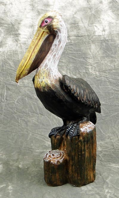 Definitely Looks Like a Wood Carving, But It’s Really Made of Cast Resin – Pelican Figurine is Poised on Three Three Posts for a Perfect Size Nautical or Coastal Accessory for Table, Shelf, Desk, Bookcase or Mantle