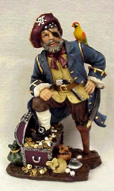 Polyresin Pirate with Peg Leg, Eye Patch and Parrot