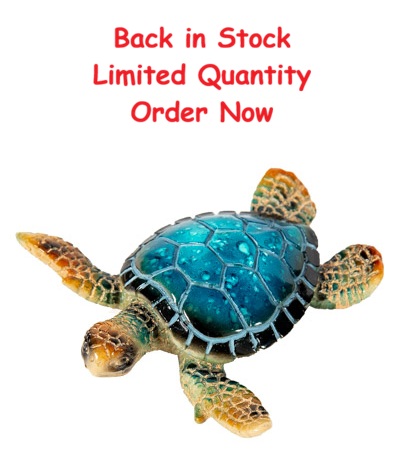 This Blue Polystone Sea Turtle is a Just Adorable and the Size of a Baby Sea Turtle Hatchling – It’s a Great Quality Souvenir at a Fantastic Price Point. Must be Ordered in Multiples of 12.
