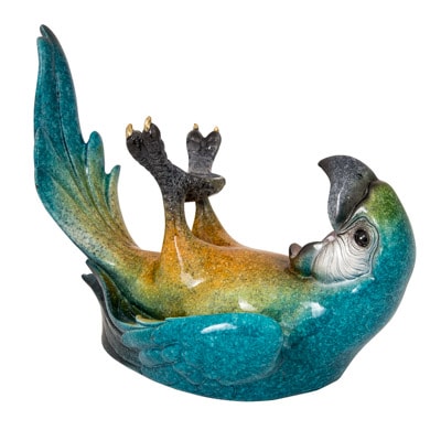 Maybe More Accurately Described as a Drunken Parrot Wine Bottle Holder – Shiny Polystone Tropical Blue Macaw Parrot is Laying on His Back Holding Up the Bottle (Not Included) with His Feet So The End of the Bottle Goes Right In His Beak