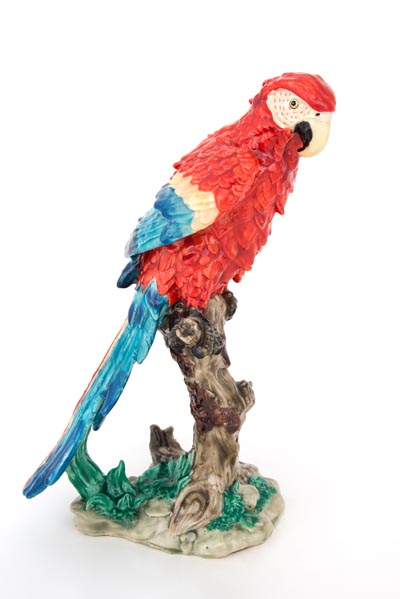 This Figurine is a Splendid Decorative Island Accent Made of Polystone with the Look of Shiny Glazed Porcelain – A Branch is the Perch for This Bright Red Macaw Parrot to Sit Quietly in Your Home