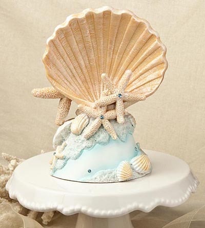 Beachy Decorative Accent That’s Just as Pretty From the Back as it is From the Front – Scallop Shell with Starfish and Smaller Shells With Blue Rhinestones – Bring a Bit of the Beach Home to Sit on the Shelf or Adorn the Top of a Wedding Cake