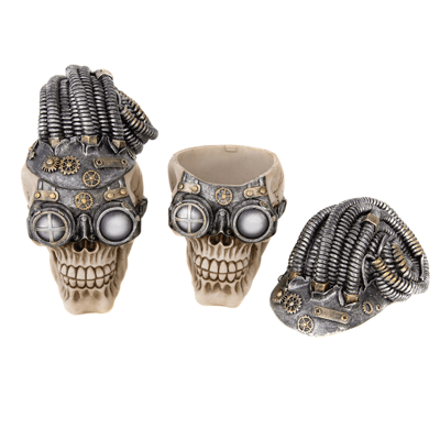 Here’s a Steampunk Skull That’s is Also a Storage Jar and Having an Empty Head is a Plus In This Case – From Creative Imagination Drawn from Steam-Powered Industrial Machinery of the Victorian Era, It’s What the Past Would Look Like if the Future Had Happened Sooner Describes Steampunk Style