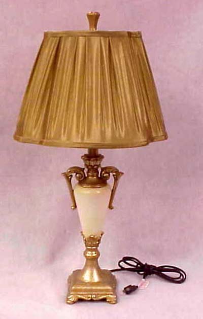 White and Silver Colored Electric Table Lamp with Shade – Lighting Furniture Accessory
