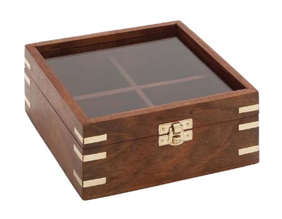 Handsome Wooden Display Case With Hinged See-Through Glass Lid – Case is Sectioned Off Inside Into Four Compartments – Use It to Showcase and Add Value to Other Products You Are Selling