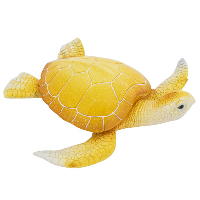 Here’s a Large Sea Turtle Figurine with a Bright Shiny Sunflower Yellow Colored Shell and Textured Skin – A Decorative Seaside Accessory Made of Polystone with Great Realistic Detailing at a Great Price – Even Has Slots Underneath So It Can Be a Coastal Wall Decoration Also